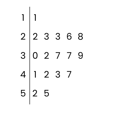 Let's have a look at how we would organise raw data into a steam-and-leaf diagram: